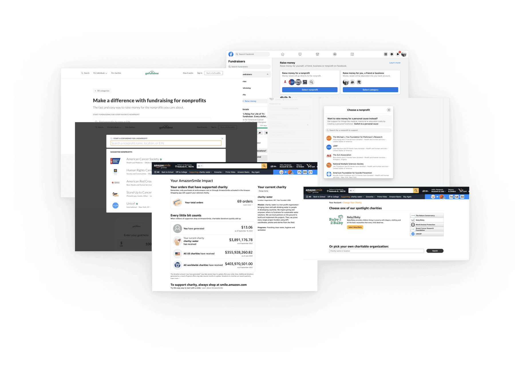 I began by analyzing the initiatives of brands like AmazonSmile and GoFundMe, gleaning valuable insights from their charity-related functionalities.