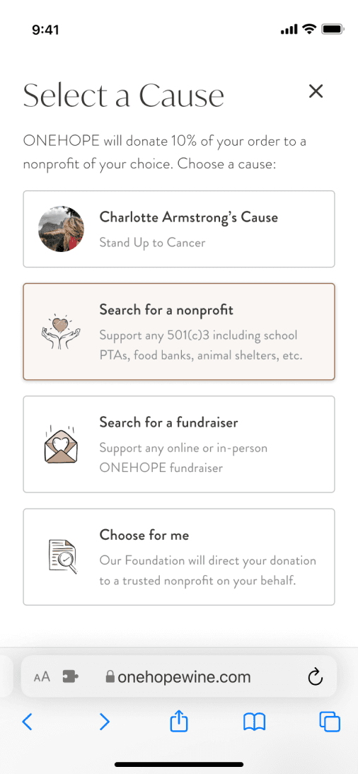ONEHOPE customers were eager to regularly contribute to their favorite charities through their purchases. However, we lacked a systematic process to facilitate this, and the potential to foster customer loyalty and grow our user base wasn't being fully exploited.
