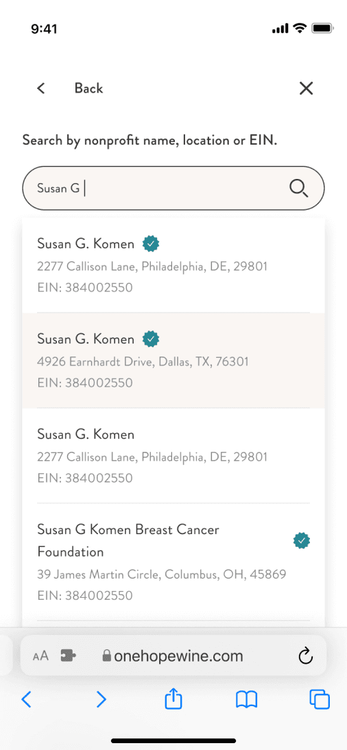 Within six months, the Cause of Choice feature led to an impressive 85% of customers having a preferred cause set in their profiles. This resulted in raising ONEHOPE's donations from $8M to over $9.5M, with a 20% increase in reorders since its launch. The success of this feature set the stage for the development of a custom Nonprofit Organization (NPO) database, aiming to refine the search results for users and enhance the overall experience.
