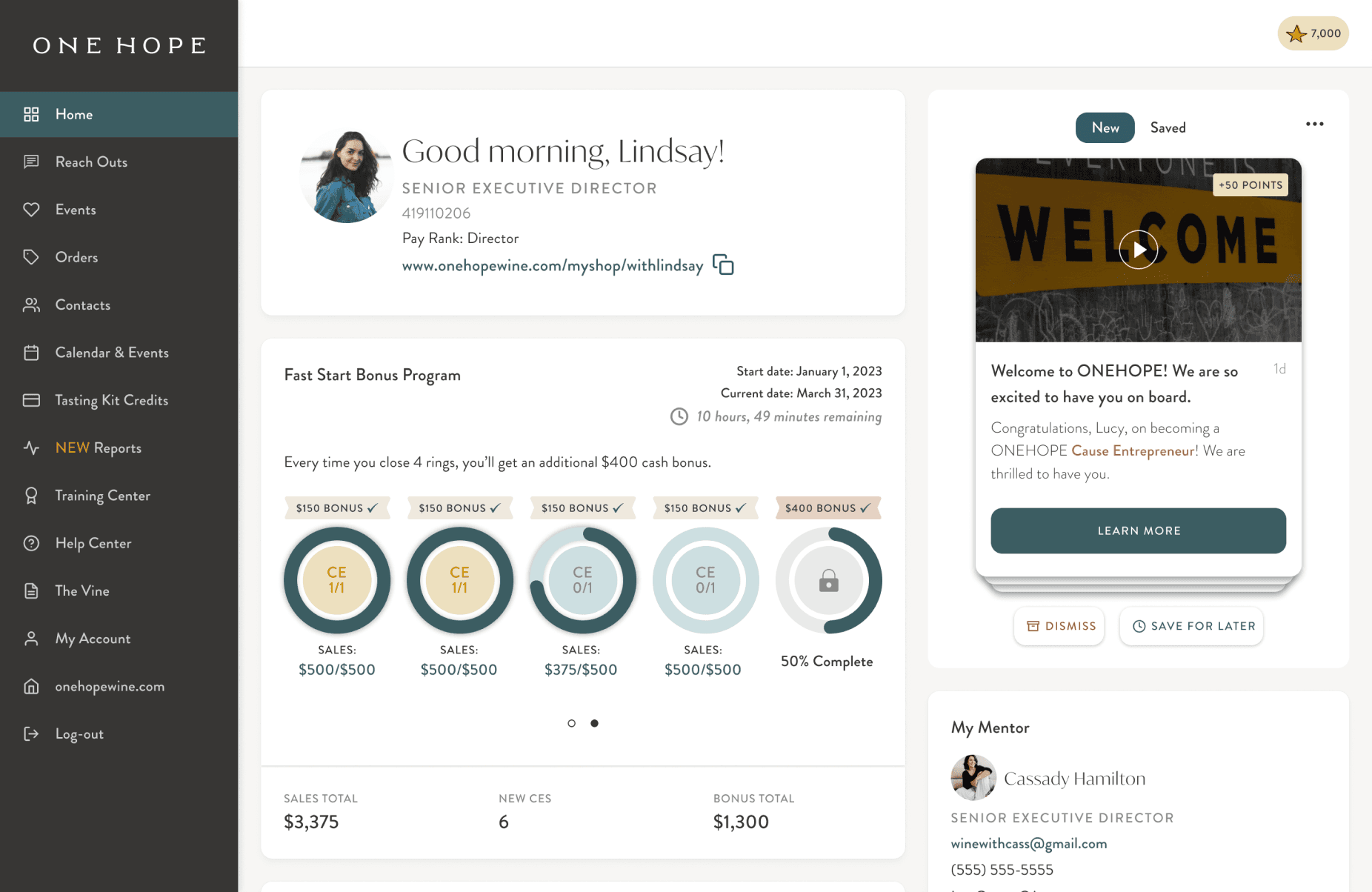 ONEHOPE found that 60-70% of its Wine Reps never successfully activated their businesses and the majority churned after the six-month mark. Feedback indicated that many Reps felt overwhelmed, confused, or intimidated by the volume of information, thus signifying a clear need to simplify the process and improve Rep retention.